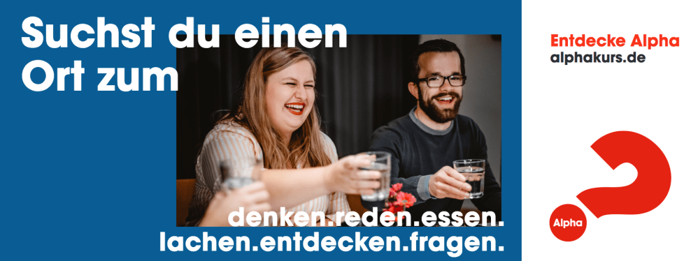 Fühl dich herzlich eingeladen zum Alphakurs ab dem 11. Januar 2024 immer donnerstags um 19.00 Uhr im evangelischen Gemeindesaal in Bendorf. Ein Glaubensgrundkurs, wo dir zugehört wird und keine Frage falsch sein kann.