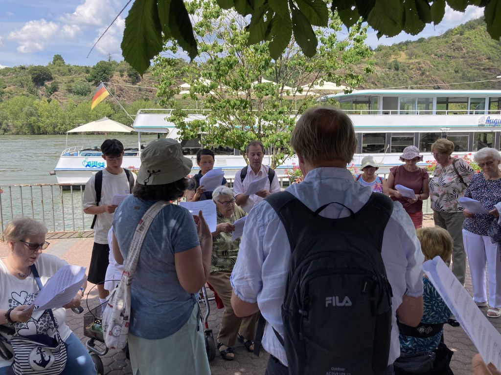 Treffender hätte die kurze Andacht von Pfarrer Dedekind nicht sein können, denn was als eine Schifffahrt nach Alken begann, endete in Boppard. Eine kaputte Schleuse versperrte den Weg zur Mosel wodurch spontan entschieden wurde einfach nach Boppard zu fahren. Der Stimmung tat das keinen Abbruch. Über 50 Senioren aus Bendorf hatten viel Freude an der Schifffahrt, den zahlreichen szenischen Ausblicken am Ufer und bei der Erkundung von Boppard.