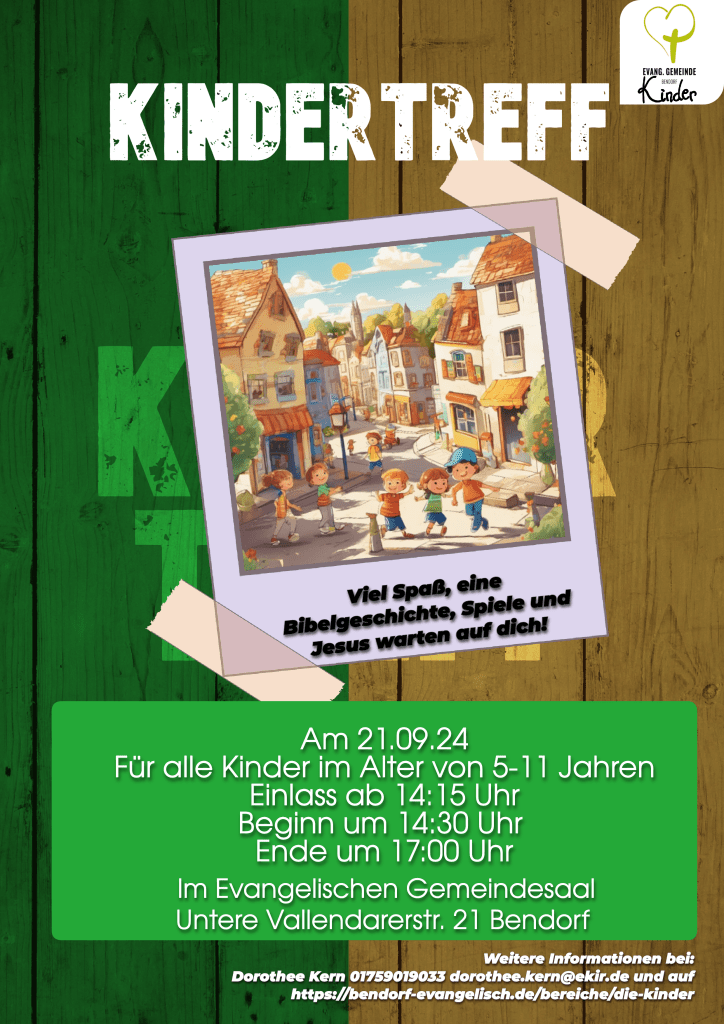 Kinder-Treff am 21. September ab 14.15 Uhr im Gemeindesaal