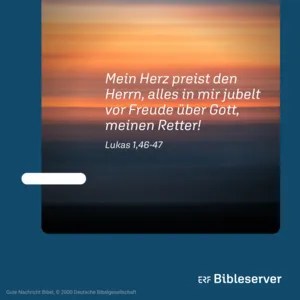 39 Einige Tage später beeilte sich Maria, ins Bergland von Judäa zu kommen, in die Stadt, 40 in der Zacharias lebte. Als sie das Haus betrat und Elisabeth begrüßte, 41 hüpfte Elisabeths Kind im Bauch seiner Mutter, und Elisabeth wurde vom Heiligen Geist erfüllt. 42 Sie rief Maria laut entgegen: »Du bist von Gott gesegnet vor allen anderen Frauen, und gesegnet ist auch dein Kind. 43 Welche Ehre, dass die Mutter meines Herrn mich besucht! 44 Als du das Haus betreten und mich begrüßt hast, hüpfte mein Kind beim Klang deiner Stimme vor Freude! 45 Gesegnet bist du, weil du geglaubt hast, dass der Herr tun wird, was er gesagt hat.«