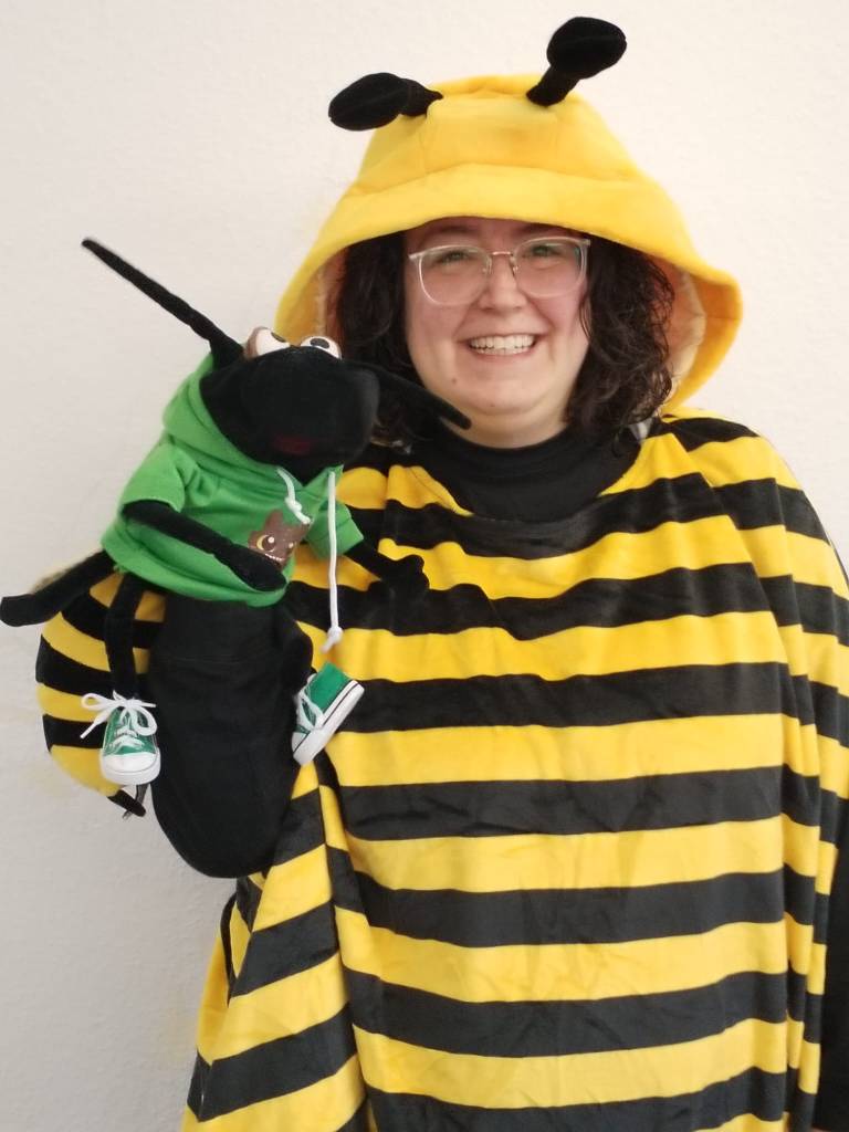 An Schwerdonnerstag besuchte das Duo die KiTa sogar im Kostüm. Die Biene kam als Doro und die Doro kam als Biene. Die Kinder waren begeistert.